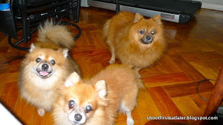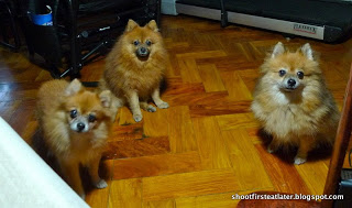 I know it’s supposed to be a food blog but I couldn’t resist. Do you know how hard it is to take all 3 Pomeranians in 1 picture with all of them looking into the camera? The opportunity presented itself when they came with breakfast this morning. You think they look at me that? With adoration in their eyes? They’re waiting for food that I will throw to them.