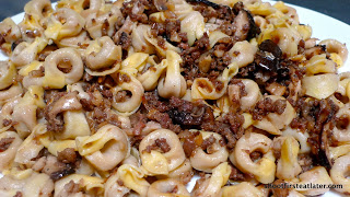 Since I had a pack of dried tortellini and some fresh shitake mushroom I decided to put together a unique Pinoy-Italian pasta dish. The recipe is not exact since I just added ingredients as I thought of it. It turned out to be good!