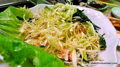 The marinated beef is very tender and flavorful. Just don’t overcook it. You dip the beef in a choice of sauces to which you can add raw garlic and chili paste. I guarantee you will eat a lot of rice.