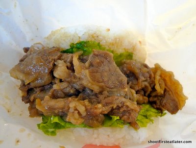The best is the Yakiniku Rice Burger. As soon as you open the plastic wrapper you inhale the wonderful aroma of marinated beef. The first bite of beef is an assault to your mouth. The beef is so juicy, well seasoned and pefectly cooked. Of course the mayonnaise is ever present. The rice patty is sticky and toasted and a bit crunchy. It’s quite messy to eat this sandwich with your hands. I ended up eating it with a fork. My only gripe is there’s not enough beef. I ate half the rice of one side with the beef. I wish they offered double beef for this sandwich. But for P109 I think it’s a pretty good deal.