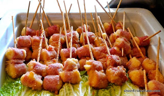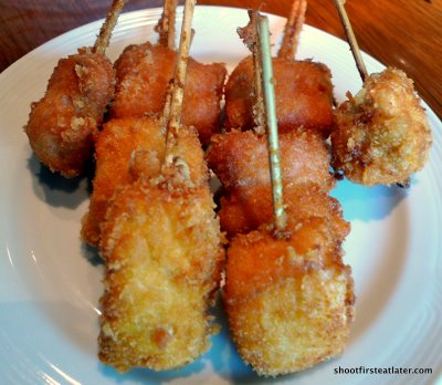 The third live cooking station is the fry station. They had several items coated with panko breadcrumbs on sticks. The only thing I didn’t get was the eggplant and lady finger pangko.