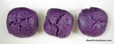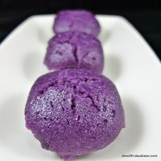 Puto is steamed rice cake. Ube is purple yam. Putong ube is the yummiest puto ever! When I take a bite I think of ube ice cream then ube cake. Putong ube tastes just like it but without all the fat and calories. The box says it’s made with real ube and doesn’t contain preservatives and artificial flavoring. For those who have never tasted puto think of it as eating a dense, soft cupcake.