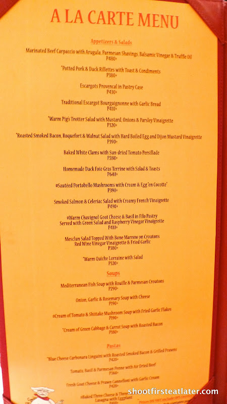 Je Suis Gourmand is one of our favorite French restaurants in Manila. As you can see from the pictures below the place is very simple, homey and not pretentious. They’ve changed their menu over the years. I still miss their caesar salad and hamburger which is one of the best I’d ever had. I guess when a lot of guests started ordering the burger for dinner it became a concern. Who would think of a French restaurant specializing in burgers. Sacre Bleu!