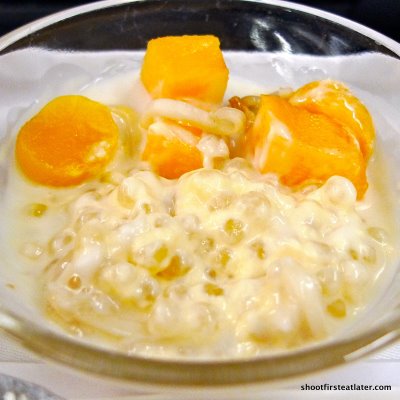 But when I stirred it I discovered the tapioca was the tiny, sticky kind and the coconut soup was thick. This dessert reminded me of a deconstructed Thai sticky rice and mango dessert or a modern take on guinataan. It was delectable.
