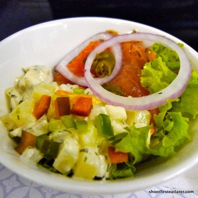 This is the food served on our return flight from Hong Kong to Manila on Philippine Airlines. I’m happy to report it was very good. For the Manila to Hong Kong meal click here.
