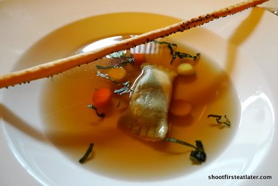 The degustation menu (P1,950+) starts with this teeny weenie mozzarella cheese w/ tomato. Despite it’s size it was tasty due to the olive oil infused with herbs.