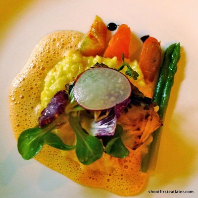 bouillabaisse froth, green asparagus &