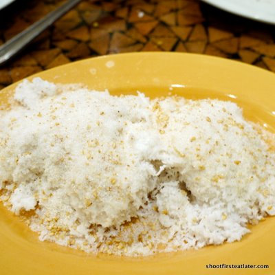 The white mound in the middle is glutinous rice cooked with coconut milk and sweetened with some sugar. Add some mangoes and you have another rice based dessert. Hmm did we just eat an entire carb based meal???