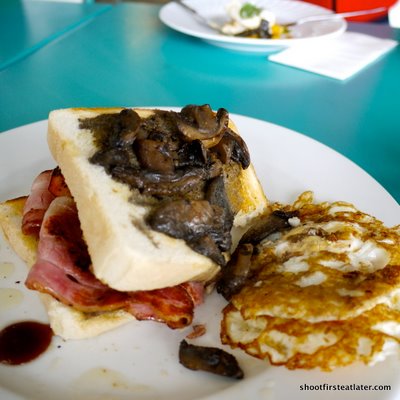 The brekkie (breakfast in Aussie) wasn’t cheap but it sure was good and unique. We ordered 3 entrees and split it among the 4 of us. I loved having fresh mushrooms for breakfast. It’s so un-Filipino breakfast food. I wish we could have it here but fresh button mushroom costs about US$11-15 per kilo in Manila. Unbelievable huh? Forget about Portabello mushrooms. That costs double if you can find it. I just had to rant about mushrooms.