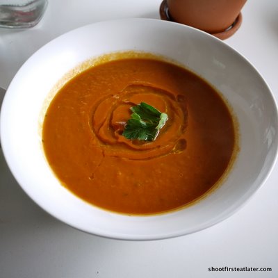 The soup was rich and yummy. It tasted almost like tomato sauce.