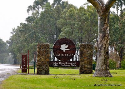 After a morning of sampling candies and nuts we were hungry for real food. Most of the guides we read said that Vasse Felix winery had very good food. So we went to check it out. The grounds were very beautiful but I couldn’t take any pictures because it was raining and the wind very gusty.