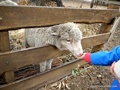 Even if we missed the show the owners of the store gave P a bag of food to feed the sheep.