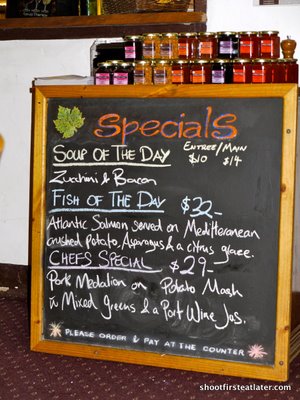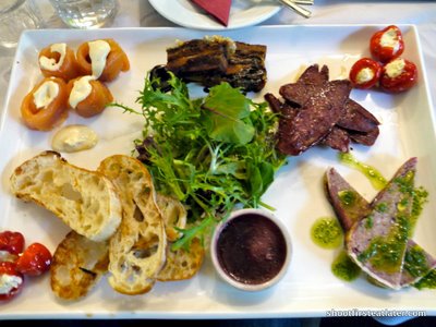 The taste plate below had several delicious things on it. We loved the venison chorizo and the cheese stuffed red pepper. There was also smoked salmon rolls and pate.