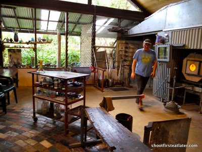 We went back to Margaret River early. It was the first time we had a chance to walk around town while the stores were still open. We went to the Melting Pot glass studio to watch a demo of glass blowing.