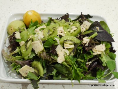 This was our last night in Margaret River so we had to finish everything in the refrigerator. We had this A$1 bag of mixed greens to which we added sliced kiwi, vintage cheddar cheese and balsamic vinegar dressing for our dinner salad.