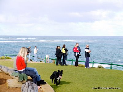 Rochelle and I were freezing while this guy was going surfing. There were already a lot of surfers in the water.