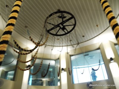 These heavy ropes are connected to the bells which can be seen on the 5th floor. We also caught the 45 minute bell ringing demo done by 18 people who pull the ropes at different intervals thus creating a medley of bells. This is definitely a great work-out for arms.