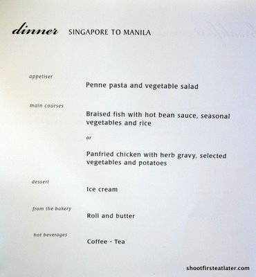 Here’s the menu for our dinner on the Singapore airlines flight to Manila.