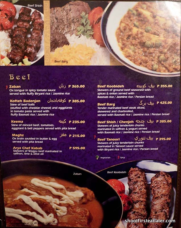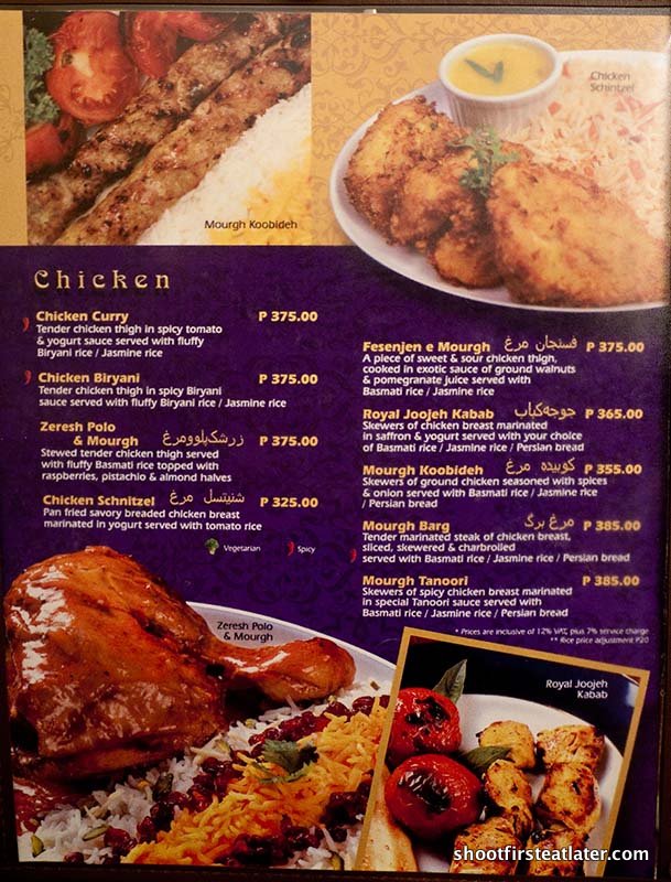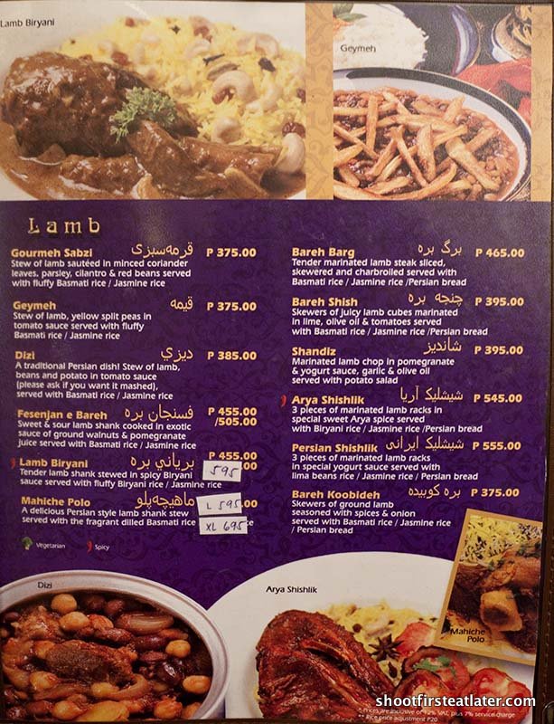 We had a very good and satisfying meal. Next time we plan to go to their newly opened branch at the Podium. Dr. Karami was very proud of all the authentic art work and decor in the Podium branch. We can’t wait to see it.