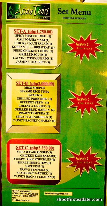 1. really delicious.i leave just two streets away from ASian Twist. We’ve been living here like for more than 20 years. We’ve seen the transformation of the big white house into the sophisticated looking Asian Twist right now.On sundays, my mom and I would attend mass in a church nearby then right after, we’d go straight to Asian Twist.  My mom and I would always get an order of Asian Twist’s Calvin Twist. They also have new noodles now like the Japanese Fetuccine. They’re good too but it’s the Calvin’s Twist that I prefer. My brother and I would usually order the california maki. Sometimes we just have it delivered at home nand eat it while watching movies. I also love their clubhouse, fruit shakes. seafood bibimpop, caine’s bagnet (new) bento boxes.When I get there next sunday, I’ll be ordering the Japanese Fetuccine.