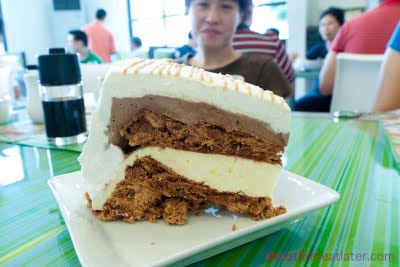 The waiter told us that the Asian Twist cake was their bestseller so we decided to order a slice to share. Layers of dacquoise with mango mousse in the middle, chocolate mousse on top and covered with whipped cream. Sounds inventive and good right? Alas there were several things that went wrong. The dacquoise was crunchy but slightly over baked. We could taste a slight burnt taste. The mango and chocolate layers lacked a little sweetness to make it stand out. The chocolate lacked chocolate flavor. It only tasted good when you take a bit of dacquoise and whipped cream and eat it together.