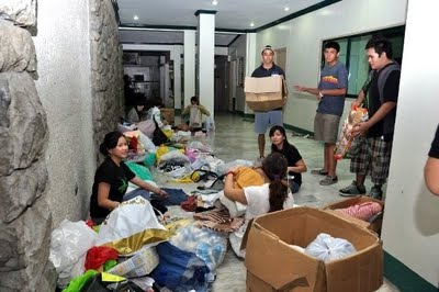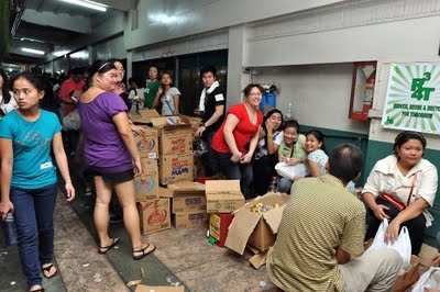 These pictures were taken by Elisa at SM Marikina on Monday, Sept 28. SM foundation with the help of volunteers from the Belo Medical Group and some ROTC from La Salle repacked food and brought medical supplies to Concepcion, Marikina. We would like to thank Deb and the SM foundation for this exceptional help.