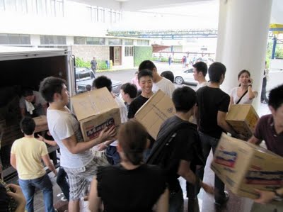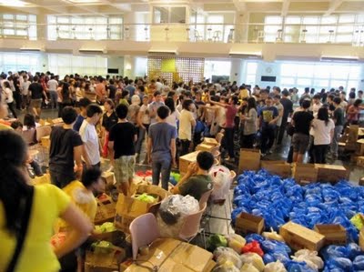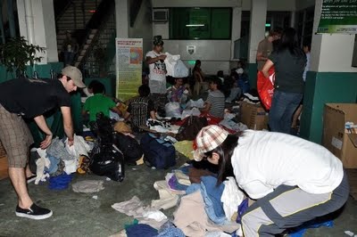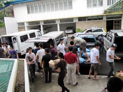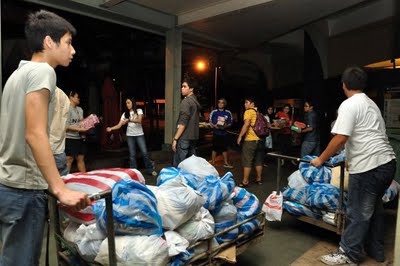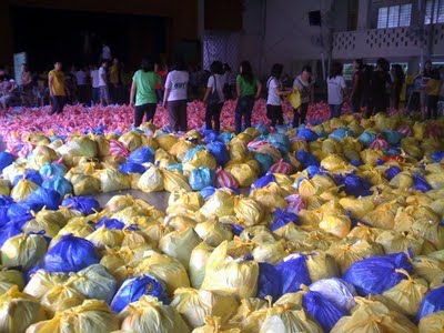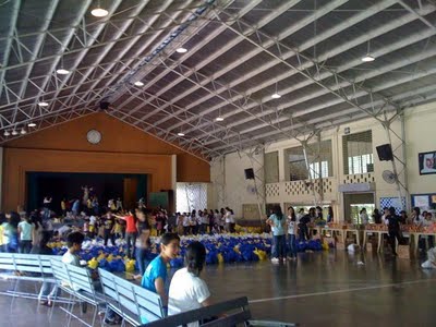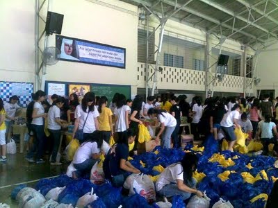 These wonderful pictures of the efforts being done in my alma mater, ICA, were taken by Debbie Lim-Yulo who sent them to me via mms when I told Kathleen I was doing this entry. Thanks Debbie and Kathleen!! They badly need more products like instant coffee, milk, milo, canned goods and rice. You can deliver them by using gate 3 where cars can go in directly to the covered court.