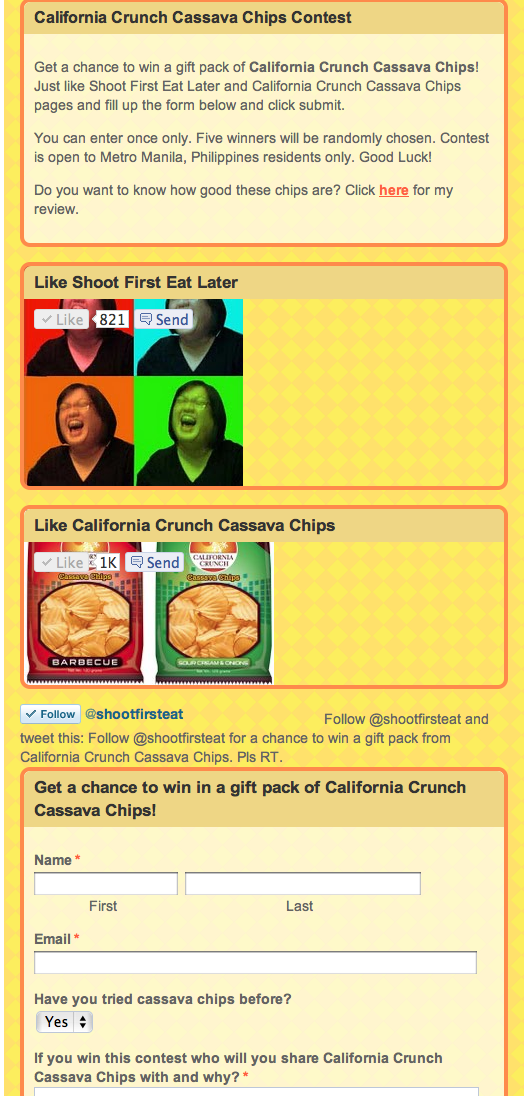 Your email address will only be used to contact the winners. Your e-mail address will not be rented, sold or shared with anyone else. The winner will be chosen by Random. The contest is open to Manila, Philippines residents only (Sponsors’ rules :D). The contest will run from October 3-7, 2011. The winners will be notified by email.