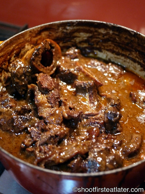 It was really good. It might be a cliché but it was melt-in-your mouth tender. I served it with mashed potatoes. I bet rice with go well with it too. The sauce and flavor was intense and complex from the caramelized onions and shallots and the melted bone marrow added a rich taste. Next time I make this I’ll try to cook it in a pressure cooker. I think our beef is much tougher than the beef in the US.