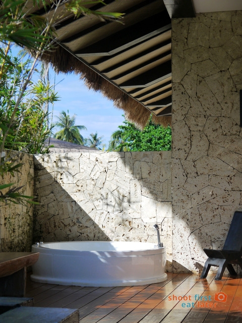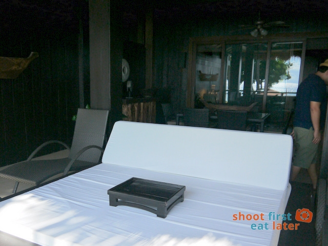 The villa measures 100 sq. meters or 1,076 sq. feet. There’s a king bed and a single bed on the side that will comfortably sleep up to four people. The room’s rate is P10,000 per night irregardless of the number of people. You can even request for an extra bed. All the rooms in the resort cost either P10,000 or 20,000. That’s why it’s no problem to move to another room in a different village. I feel this is really a fantastic deal considering all the luxurious amenities in the room and the resort.