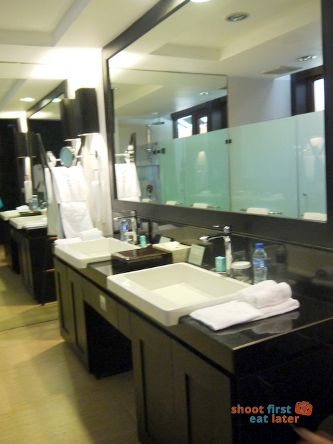 The bathroom spanned the whole width of the room. It’s one of the nicest bathrooms I’ve ever seen in a hotel.
