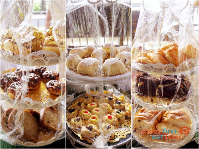 Too bad the pretty pastry tiered display had to be covered with plastic to shield the goodies from flies.