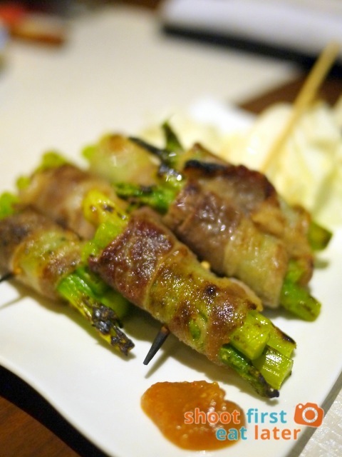 This restaurant had two pages of kushiyaki or grilled skewered food. Each plate came with a tiny dollop of miso sauce for dipping. That miso was the best part since it brightened everything we dipped into it.
