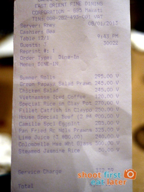 I was very, very happy with our dinner at La Petite Camille. The prices were very reasonable. I can’t wait to go back and have an entire order of that special rice in claypot.
