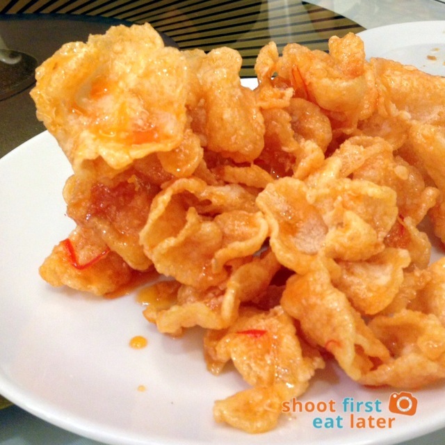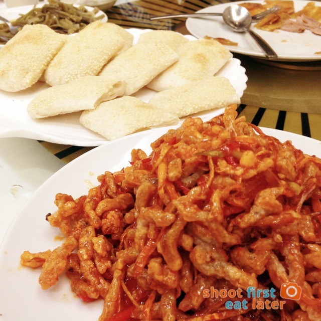 A staple for us is this thinly sliced fish fried to a crunch and glazed with a sweet and sour sauce.