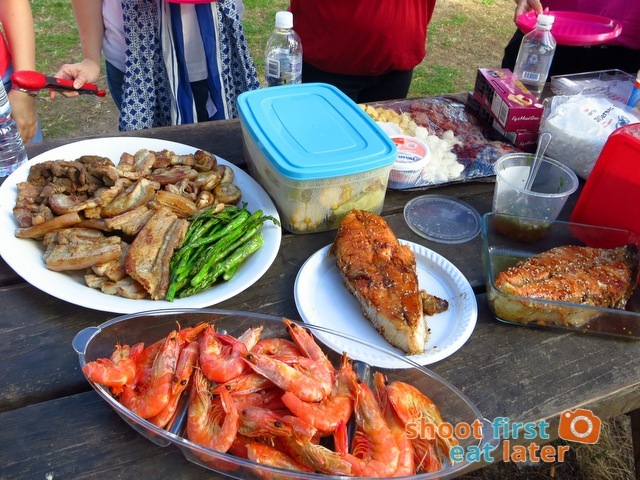It’s obvious that the family was used to having picnics here. They worked fast like a well oiled machine. Here’s Mylene grilling pork belly simply seasoned with salt and pepper while her son Carl watched on.