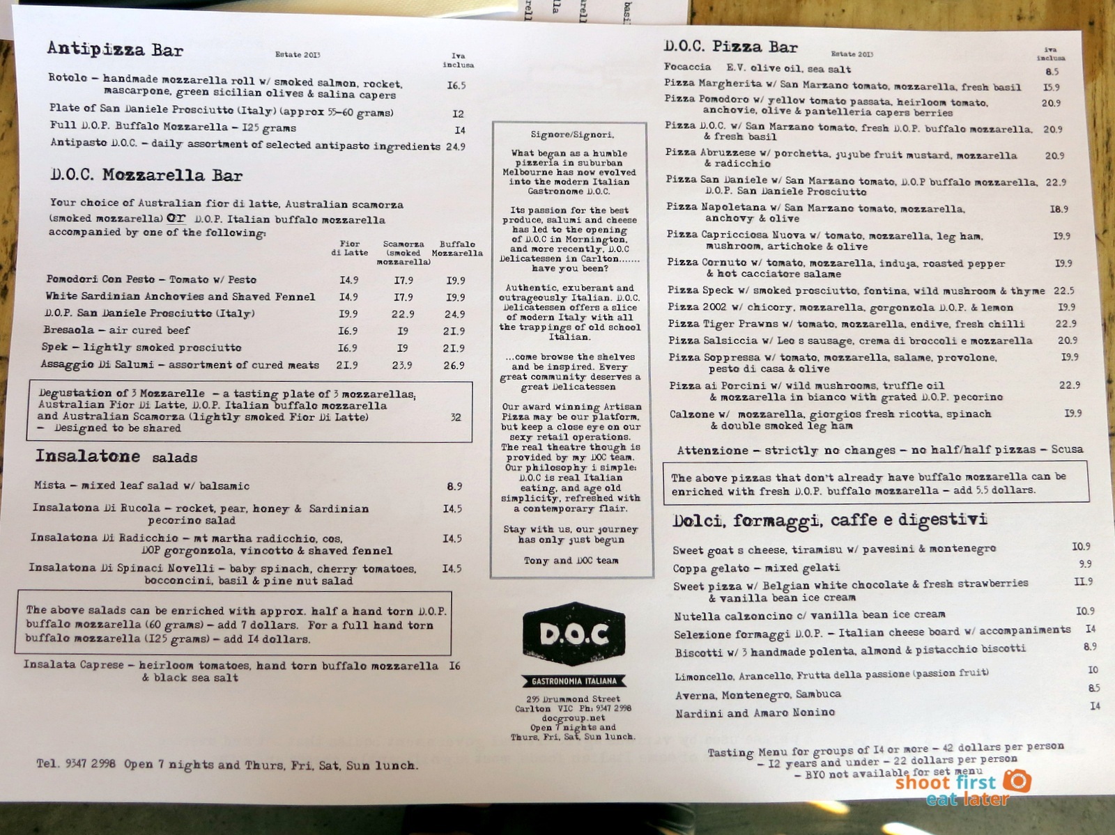 I highly recommend anyone going to Melbourne to eat at least once at D.O.C. Pizza. After your meal go to D.O.C. Espresso for excellent coffee.