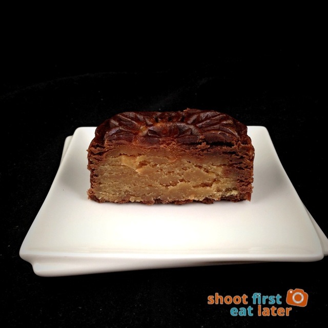 I’ve said before that I’m not fond of cookie butter but in this mooncake the combination of spiced lotus paste with Lotus Biscoff spread center and orange snowskin was quite good. I liked how the gingerbread flavor of the spread enhanced the light orange spiked filling. I just wish the lotus cream paste was smoother.