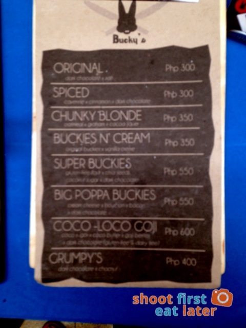 Bucky’s is not a brownie or chocolate cake. Whatever it is it’s one of the best ‘not brownie’ I’ve ever eaten in Manila. It has a fudgy yet chewy texture that I look for. It’s not too cakey or too fudgy but it’s somewhere in between. It had a super dark chocolate taste with an obvious presence of salt. I bought the Grumpy’s which had chunks of chocnut inside for an almost chocolate peanut butter bar. This would make a great birthday or Christmas gift. I don’t mind receiving this over and over again. A++++