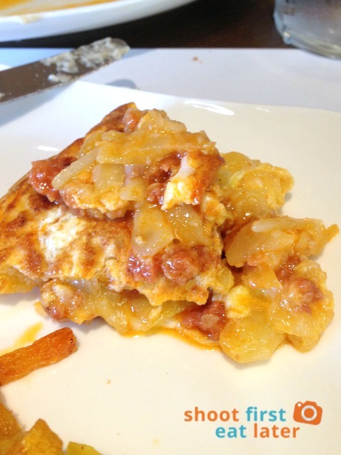 The tortilla was the only thing substantial in size. The potato, egg and chorizo omelette was the size of a small fry pan. It was also the wettest tortilla I’ve ever eaten. It did a good job of silencing the sounds of our tummies.
