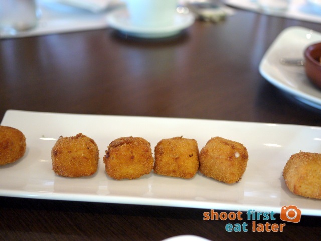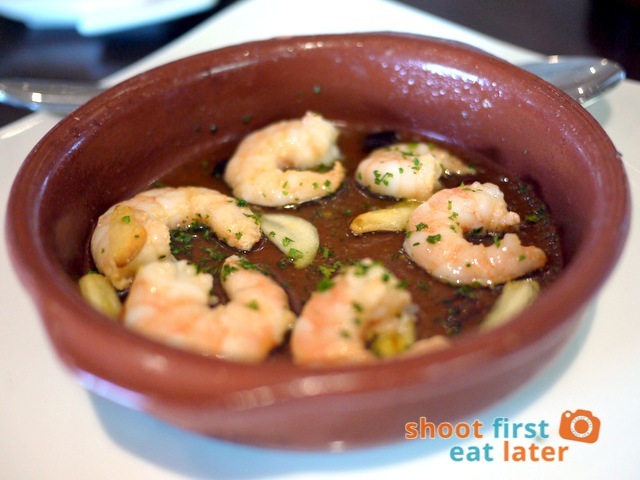 I already had inkling that the small plates of food would be expensive just like other tapas restaurants in Manila. What I didn’t expect was to find 6 little pieces of shrimp spread evenly across the small dish hoping to make it look full. At P375 an order each shrimp comes out to P68.75 inc. service charge. We asked for bread to dip in the EVOO but was told we had to pay for it. The waitress later came back and gave us 4 slices for free. In fairness the shrimp was fresh and I really liked the spicy and garlicky olive oil which I liberally dipped my extremely toasted bread into.