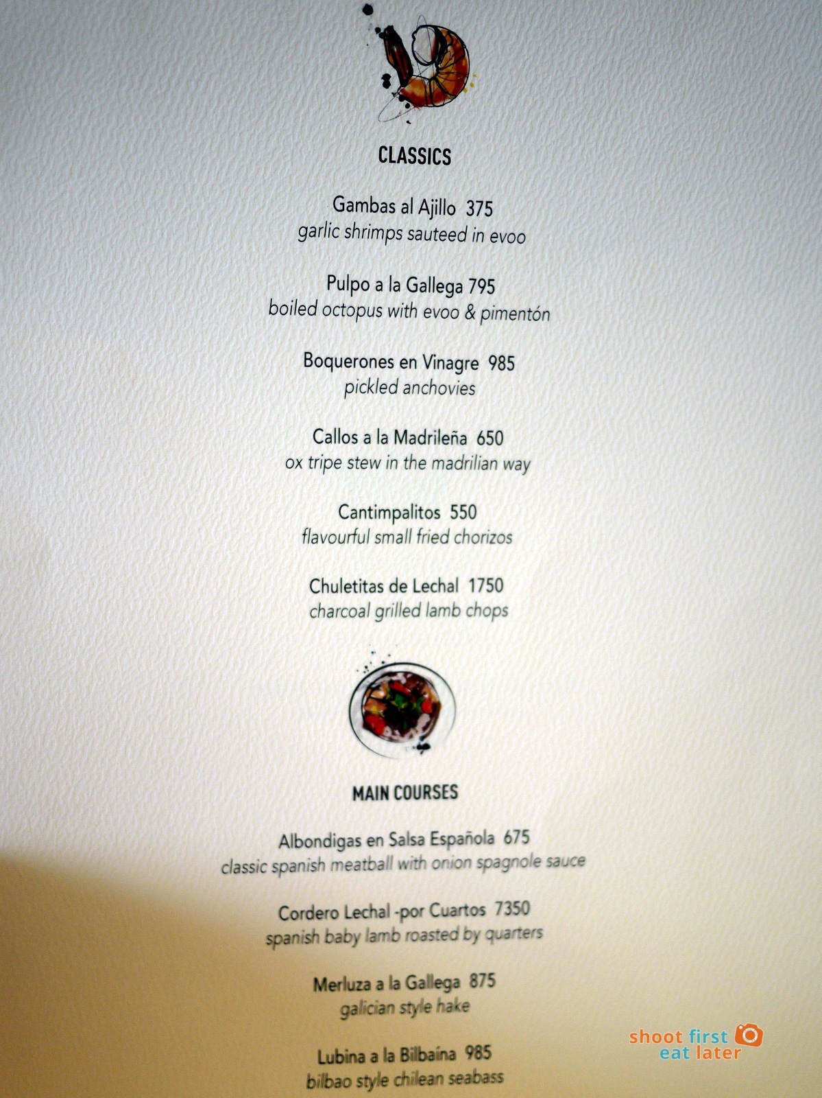 You might say I didn’t order the restaurant’s specialties so I can judge the restaurant based on those. But I just can’t find the will to order a piece of homemade sausage that costs P650 (Butifarra) or 8 slivers of vinegar marinated anchovies (Boquerones) even though that was my favorite dish in Spain. I saw pictures and comments of said dishes on Instagram and Facebook.