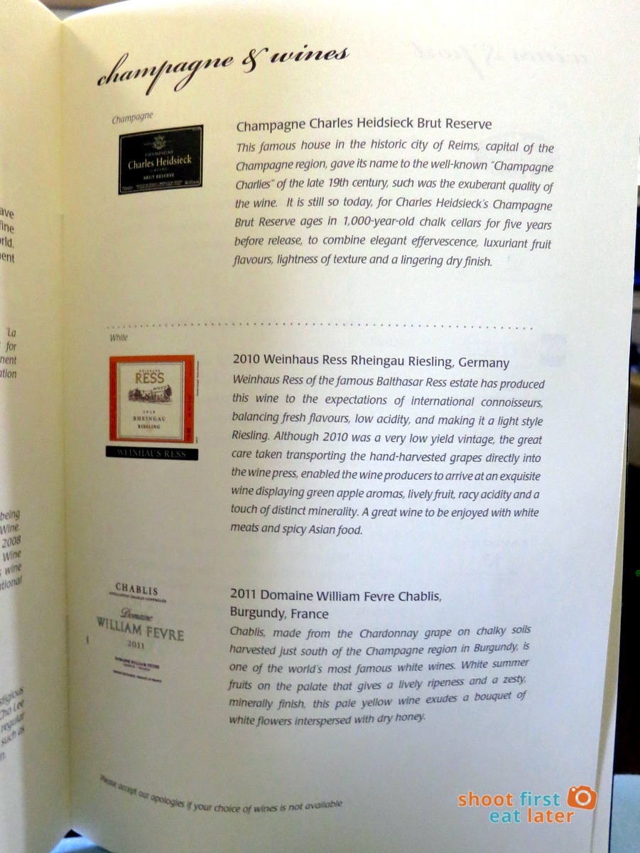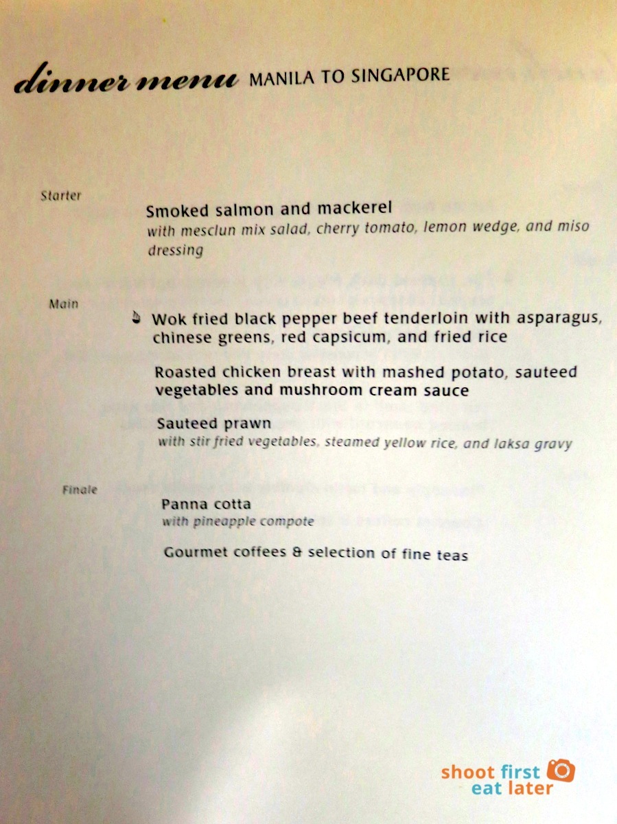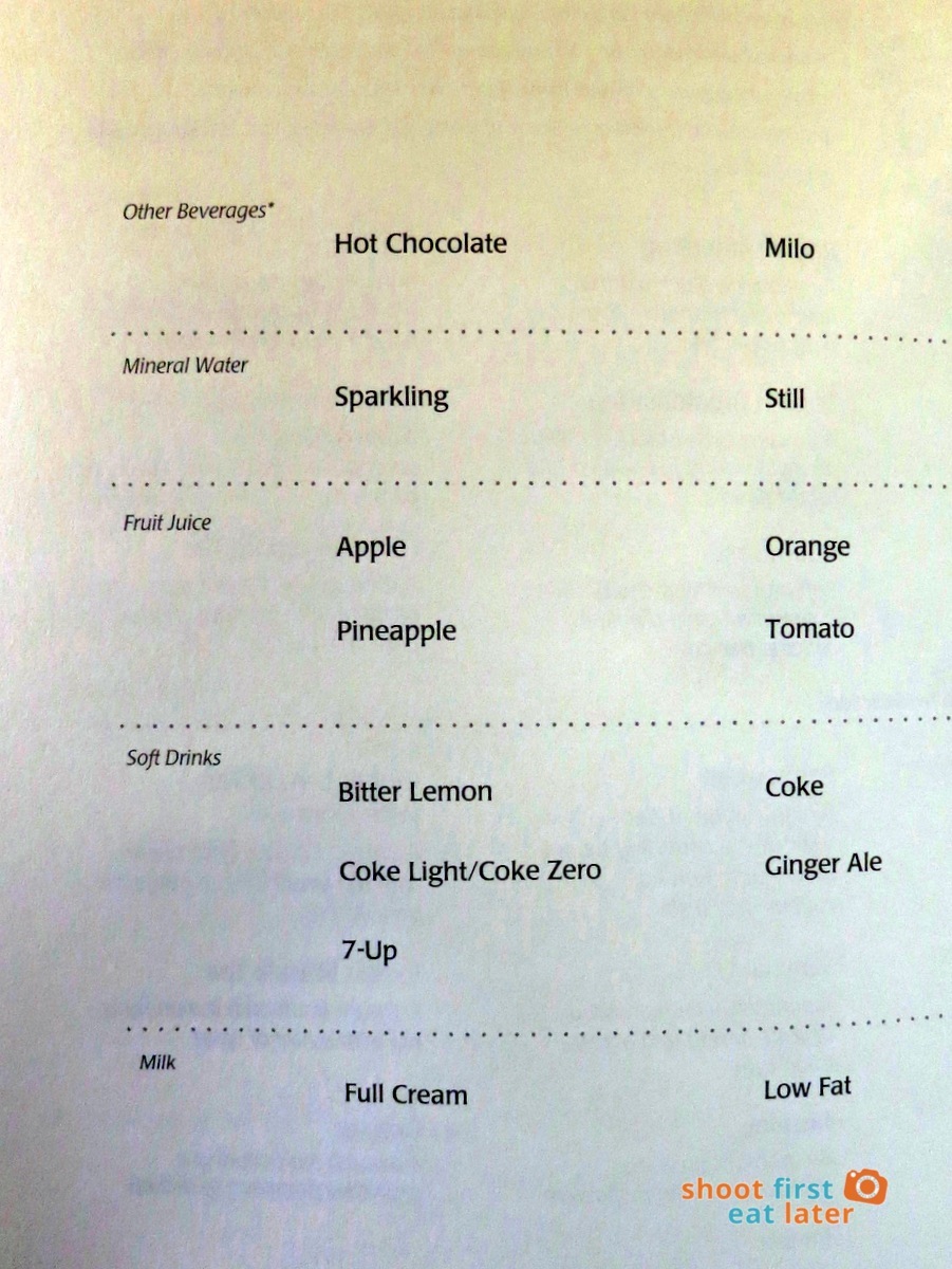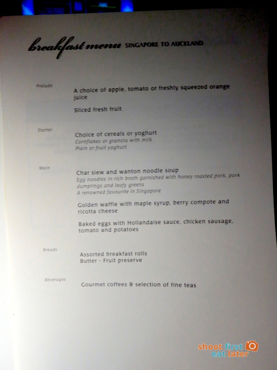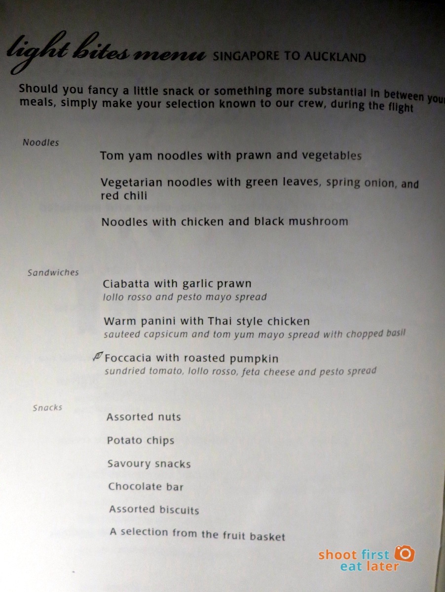 I didn’t choose any of the entrees on the menu because I took advantage of the BOOK THE COOK service of Singapore Airlines. Prior to departure I chose my meals for the flights that allowed it. There were so many choices but I knew what I wanted. There is no additional charge for this service.