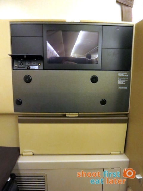 My ‘cubicle’ was quite spacious. Even with my legs stretched out if didn’t reach the front wall. I didn’t like the placement of the AC outlet beside the tv. You would need a really long cable to put your gadget on the seat near it.