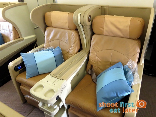 I usually choose one of the seats in the middle so I can leave my seat without disturbing anyone. I wasn’t able to get this seat so I chose an aisle seat on the side. Notice the leather seats?