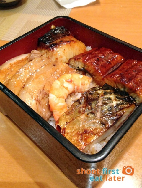 Three kinds of fish and super tender, melt-in-your-mouth pork belly slices on rice, what more can you ask for?