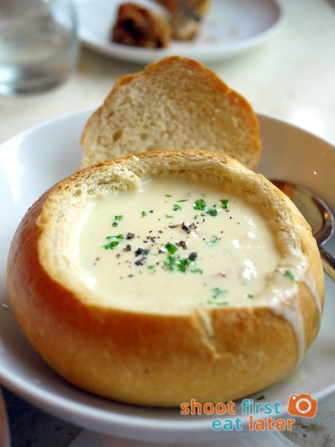 While most of my friends had the squash soup two others shared the clam chowder in a bread bowl. These two declared the clam chowder even better. Rich but not too thick and thankfully not filled with only potatoes. Does anyone really eat the bread bowl? It looks nice but what a waste of bread.