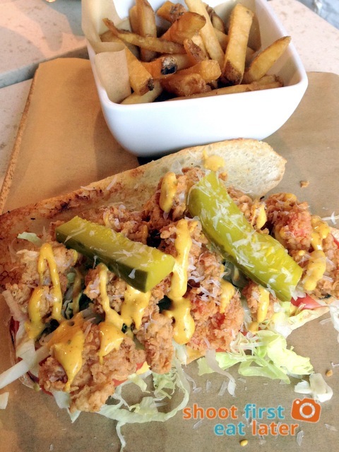 I’ve never tried an authentic po’ boy before so I can compare but this was a very well made sandwich. The breaded shrimp was very crisp and not oily. I actually only ate the shrimp since there was so much food I had to try. It was also almost impossible to cut this sandwich into 7 portions. If you do eat this sandwich on your own you’d need a big mouth and a big appetite. It’s one overstuffed sandwich.