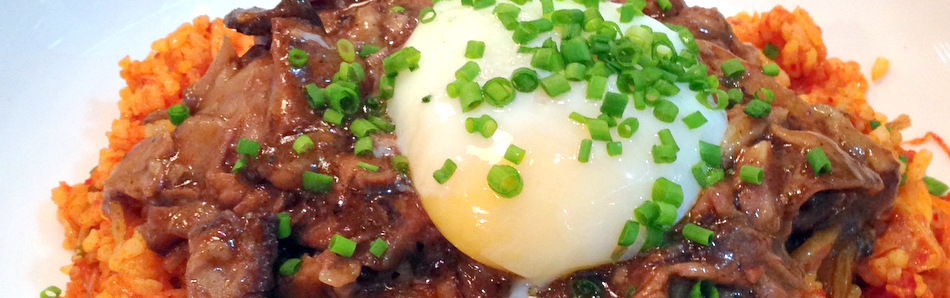Previous Image Next Image Wildflour Café + Bakery Podium – Kimchi Fried Rice with Braised Short Rib and Poached Egg P465-001