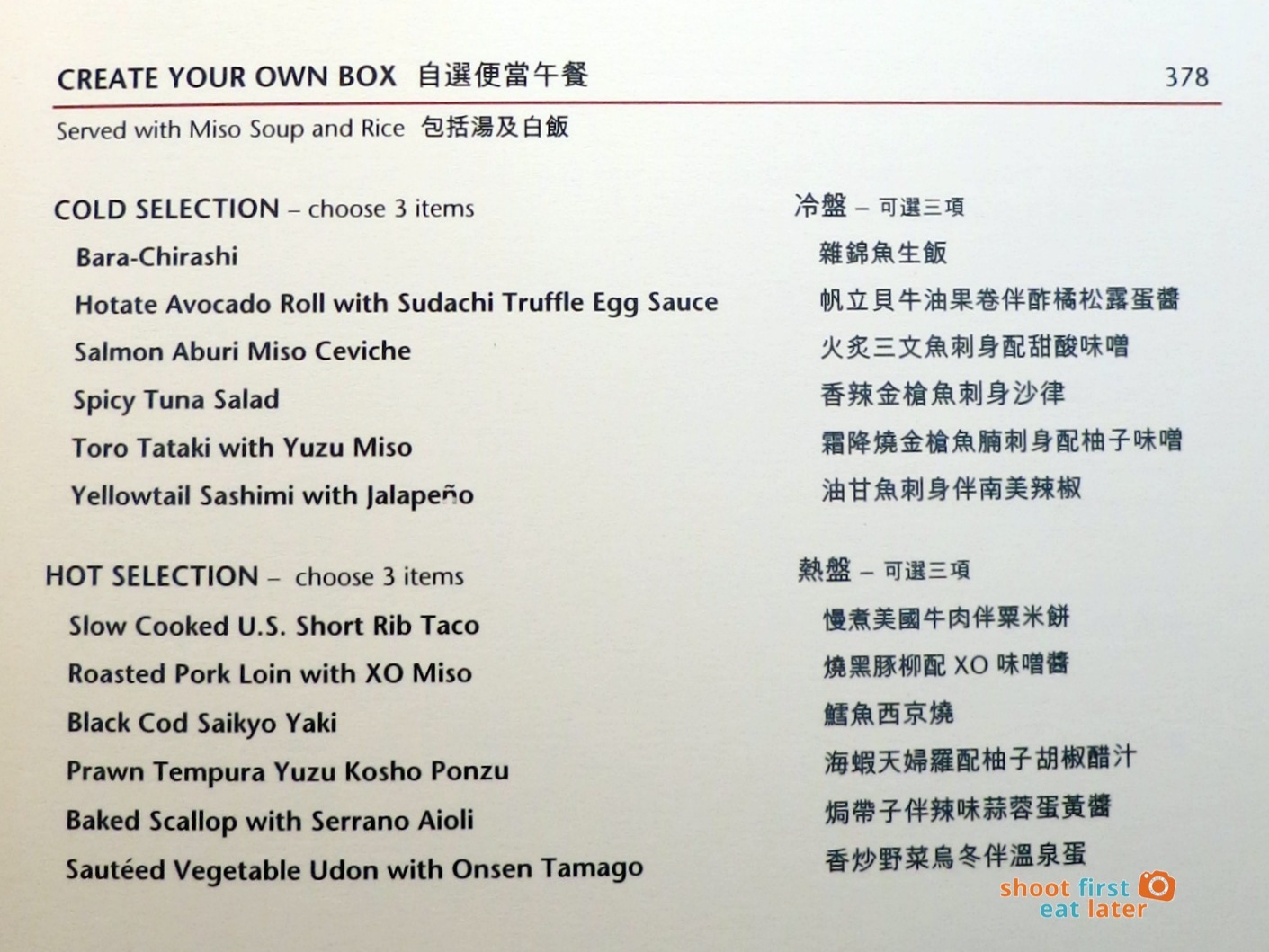 Nobu Hong Kong menu copy